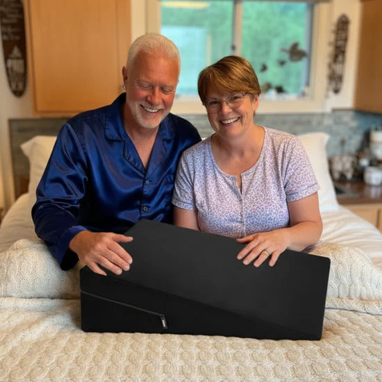 The Moodie Intimacy Pillow is precision-engineered at 27° - the exact angle that removes strain and improves positioning. When physical discomfort is eliminated, natural desire often returns.